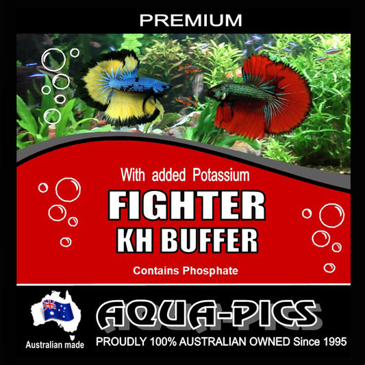 KH or Carbonate Hardness is a measurement of the carbonates and bicarbonates present in your aquarium water. PH is a measurement of how acid or alkaline your aquarium water is. If the KH is too low, the pH in your tank can fluctuate widely, stressing or even killing your fish. KH buffer (also known as KH generator or KH powder) stabilises the pH of your aquarium by correcting the KH level. Keep up your water changes, add the Aqua-Pics KH buffer specially formulated for your species of fish and you should never have a pH problem again!