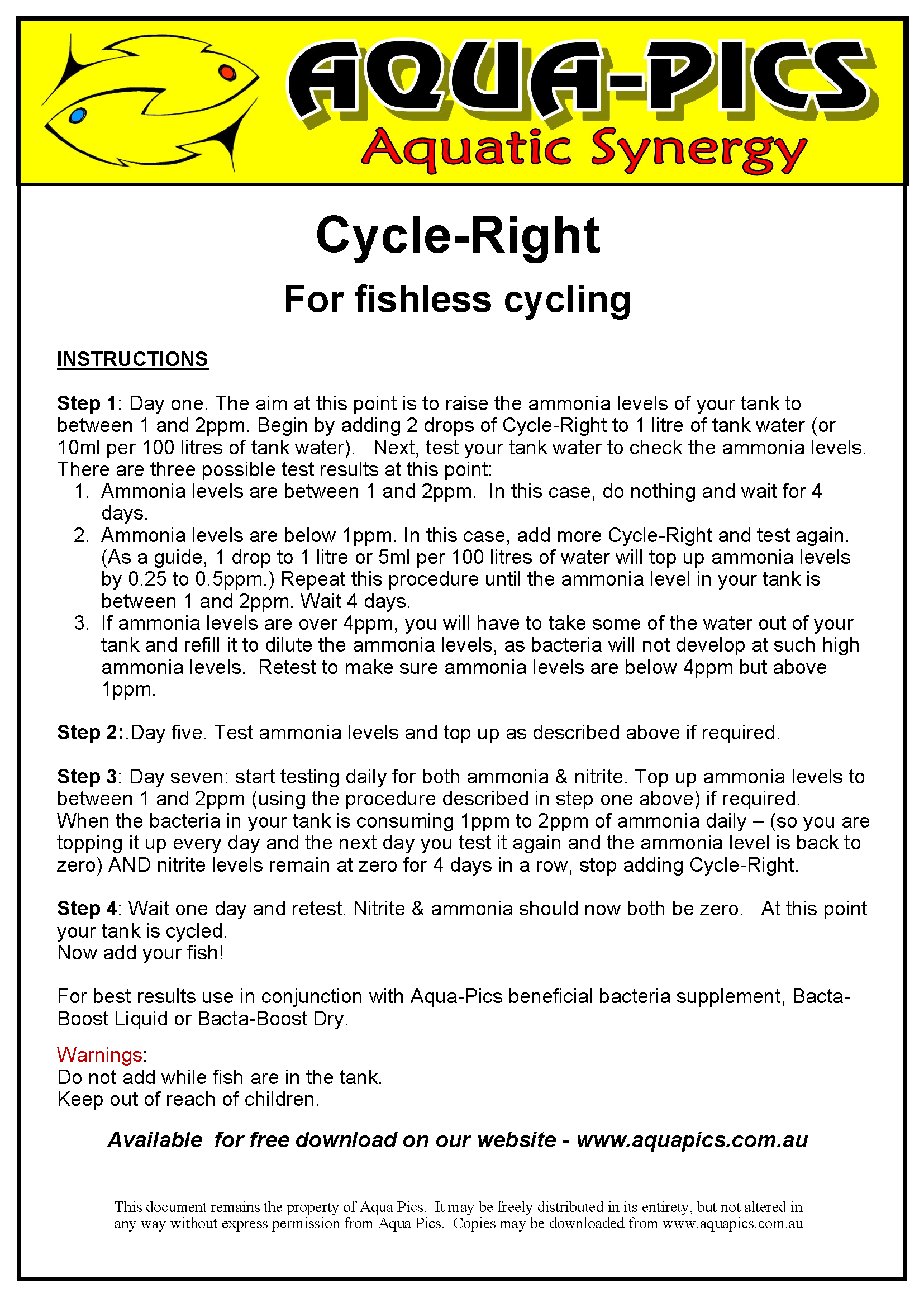 Cycle-RightDetailed instructions on how to use Cycle-Right for fishless, cruelty-free tank cycling.