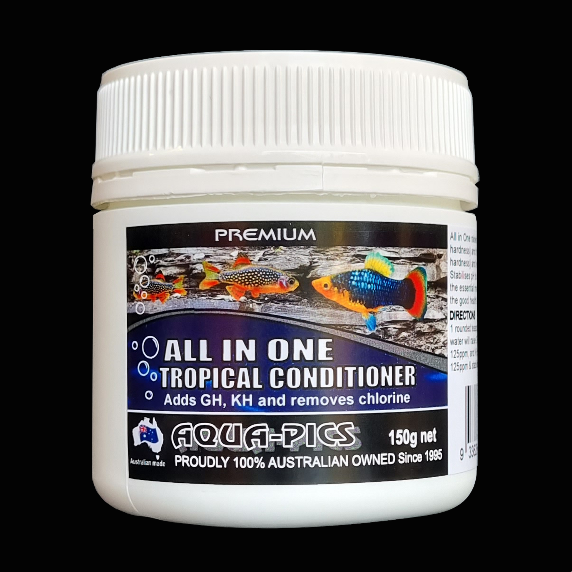All In One Conditioner for Tropical fish is an easy-to-use, one-step mineralisation and dechlorination solution for people with small or nano freshwater aquariums who don’t want to fuss with measuring out multiple products to get their water ready for fish. With just this one product, you can raise the GH (general hardness) and the KH (carbonate hardness) at the same time, stabilising the pH of your aquarium. This product also removes chlorine, making tap water safe for fish. Aqua-Pics All In One Conditioner adds the essential minerals required to aid in the good health; longer life of your fish. Suitable for tap water and rainwater. Contains chemically clean phosphates, which should not exacerbate algae.
