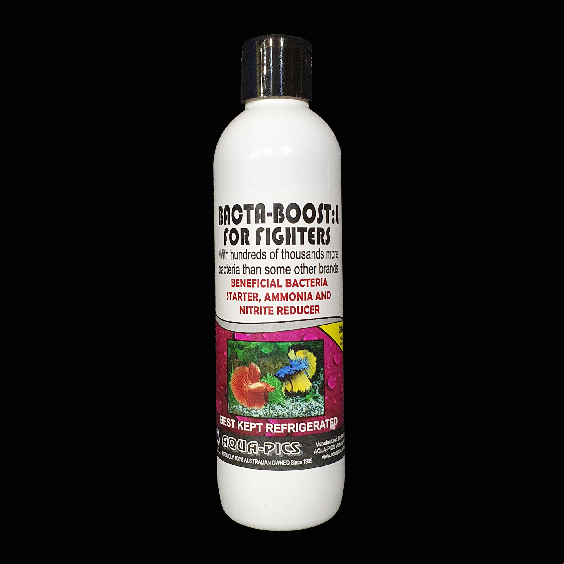 Bacta-Boost Fighter is a super concentrated liquid beneficial bacteria supplement which supplies the beneficial microbes and enzymes required to break down waste and convert toxic ammonia and nitrites to nitrates. Water plants and regular water changes then control the nitrates. For fresh and salt water.