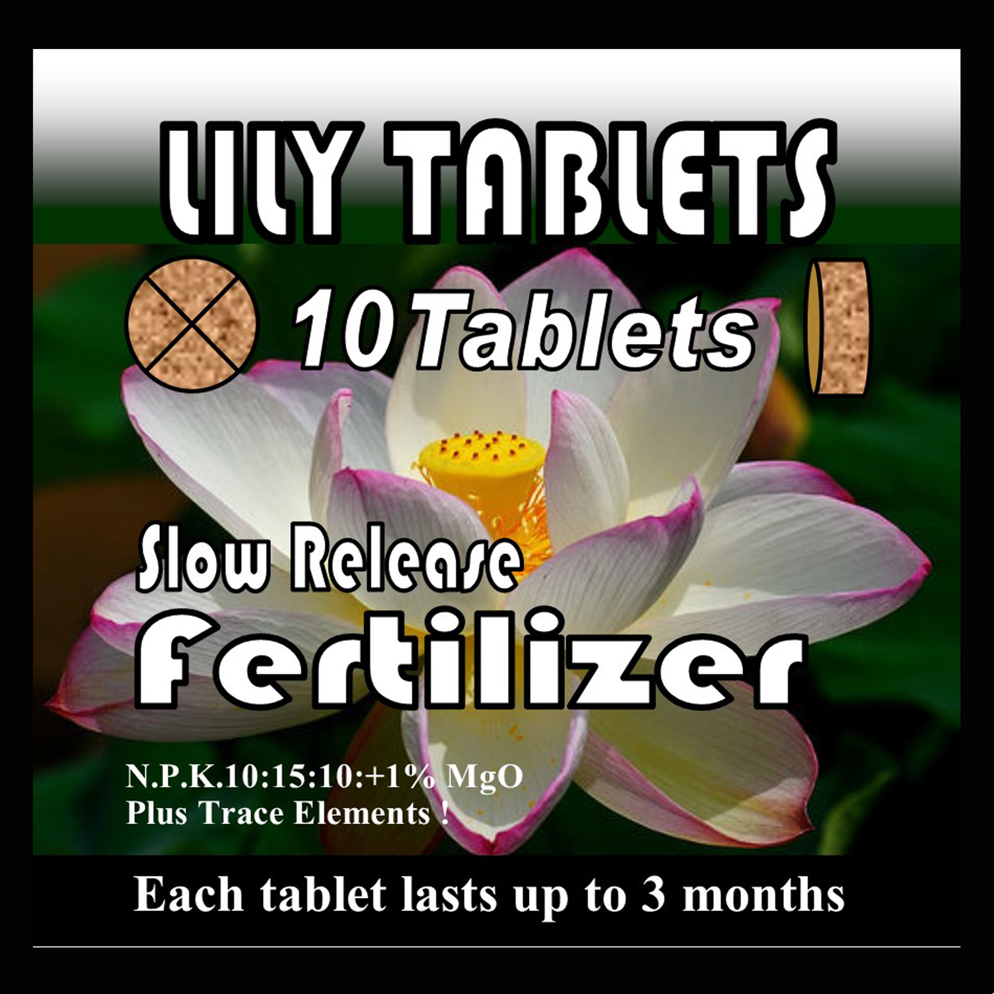 Lily Tabs are a slow release plant food containing trace elements, calcium, magnesium, iron, zinc and boron. Designed for optimum results with water lilies and other substrate feeding plants, producing thick lush plant growth and healthy flowers. Each tablet will feed up to a 26cm diameter pot, and can be broken into 2 or 4 pieces for smaller areas or to be spread around the pot for more even fertilisation. Lily Tabs are easy to use with no messy mixing or measuring.