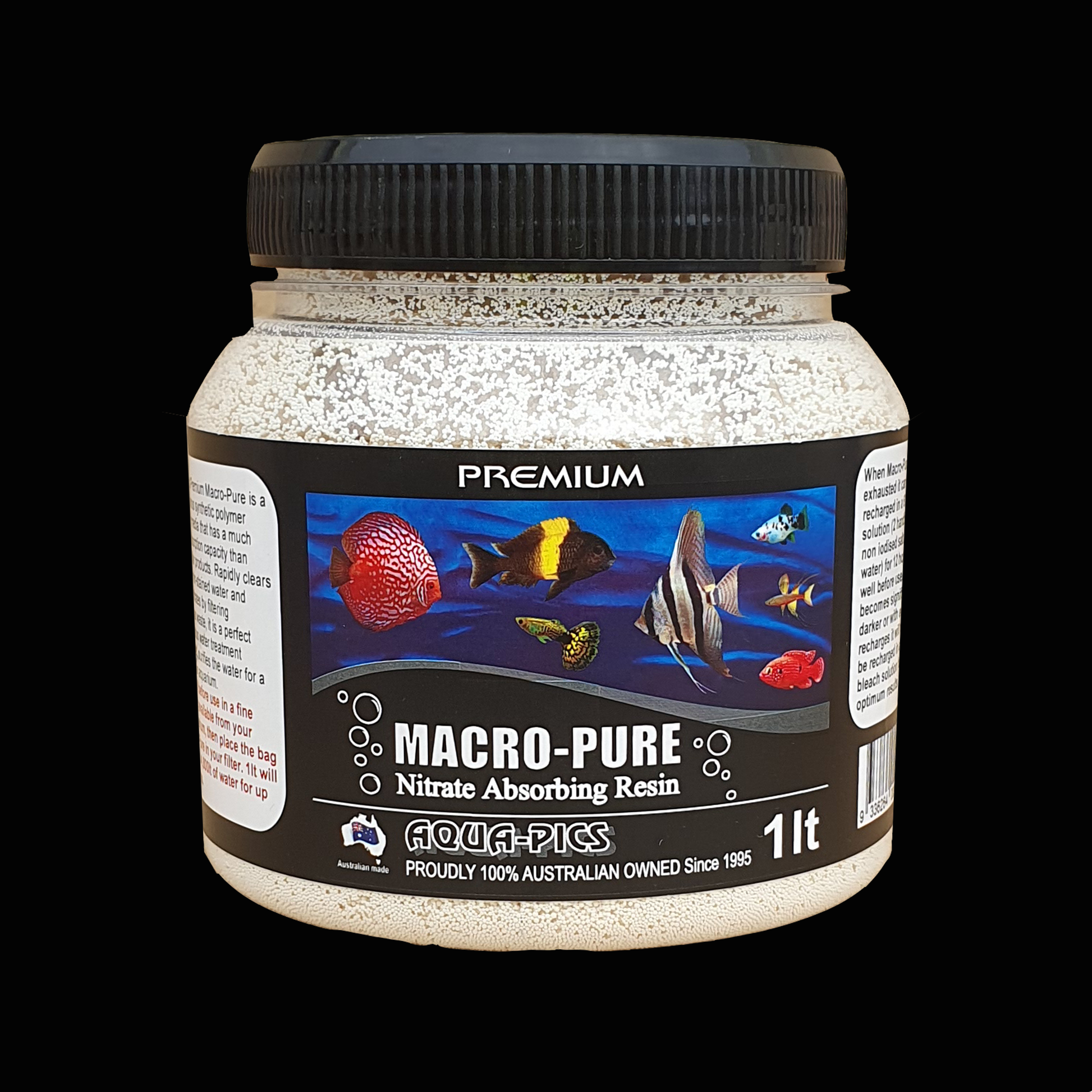 Aqua-Pics Premium Macro-Pure is a macroporous synthetic polymer resin filter media that has a much greater absorption capacity than many other similar products available. Rapidly clears brown tannin-stained water and absorbs nitrates by filtering nitrogenous waste. It is a perfect treatment system which purifies your water for a crystal clear aquarium. Macro-Pure will not interfere with other treatments such as KH buffers or GH generators.