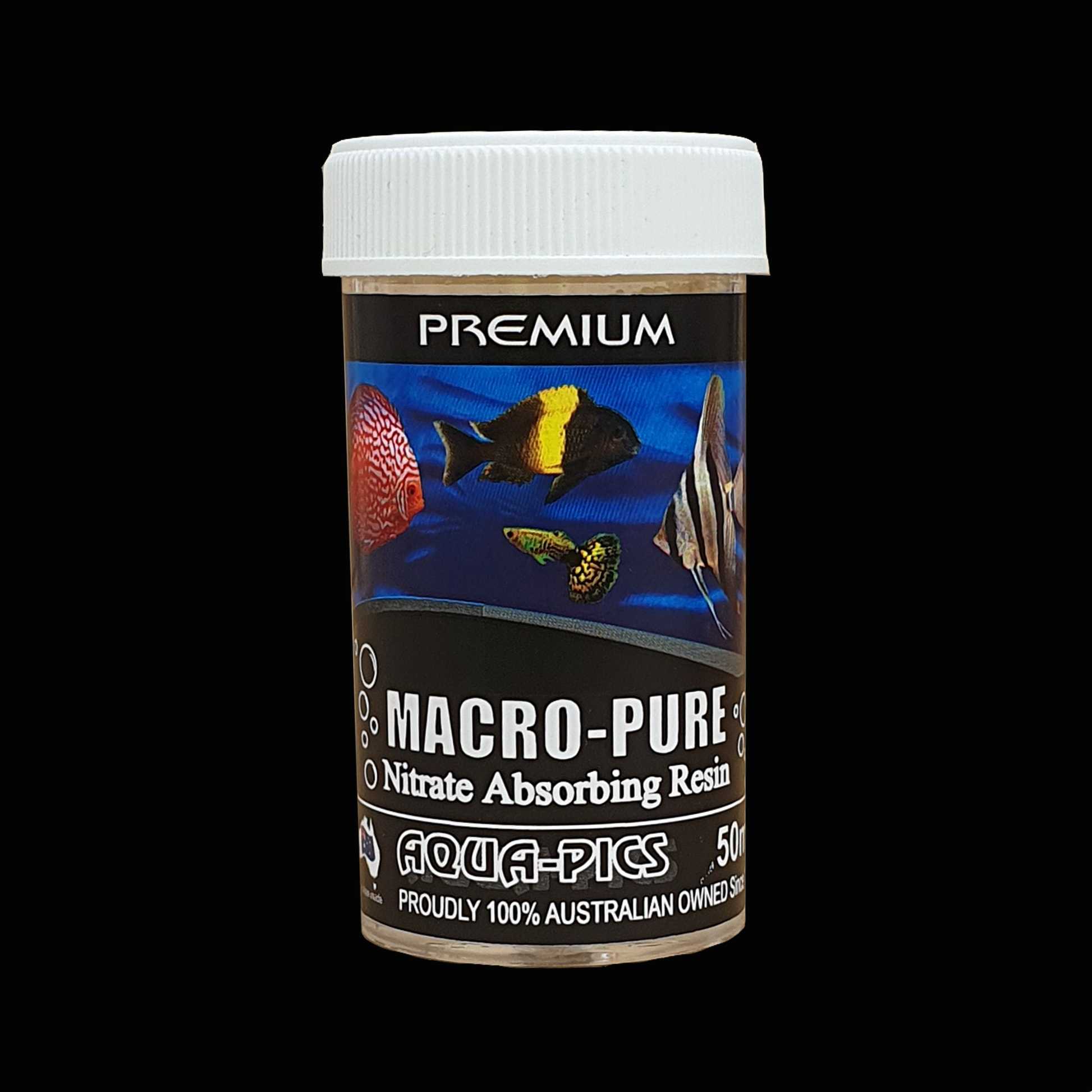 Aqua-Pics Premium Macro-Pure is a macroporous synthetic polymer resin filter media that has a much greater absorption capacity than many other similar products available. Rapidly clears brown tannin-stained water and absorbs nitrates by filtering nitrogenous waste. It is a perfect treatment system which purifies your water for a crystal clear aquarium. Macro-Pure will not interfere with other treatments such as KH buffers or GH generators.