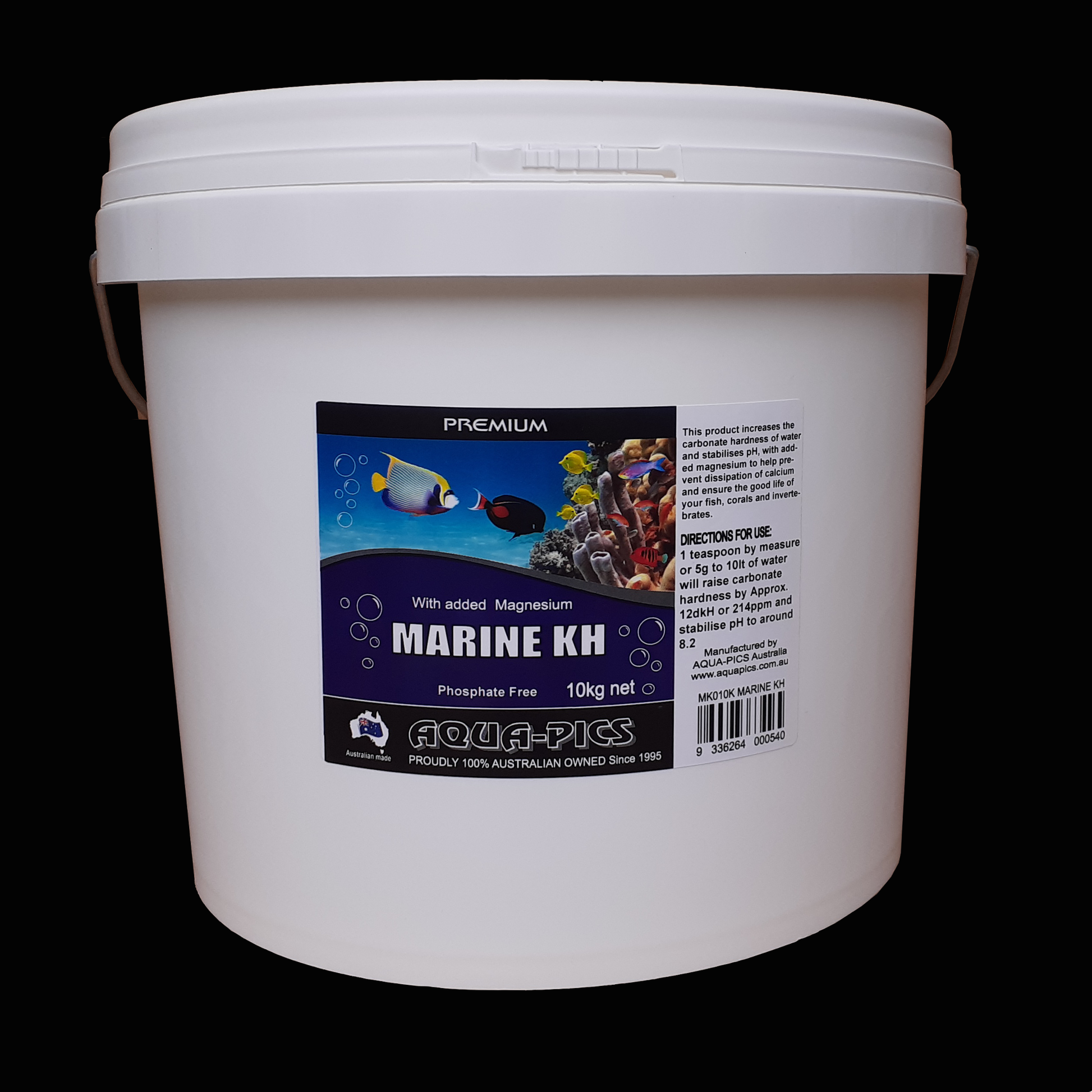 Directions: 1 teaspoon by measure or 5g to 10 litres of water will raise carbonate hardness by approx. 12dkH or 214ppm and stabilise pH to around 8.2